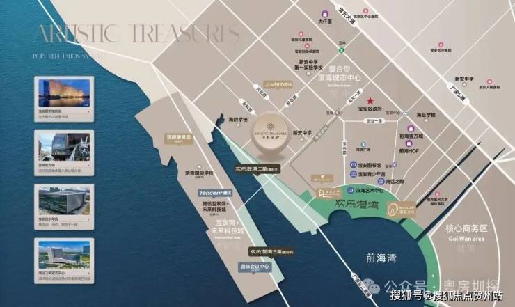 保利瑧誉位于宝安核心区,临近欢乐港湾,各项配套丰富,交通便利,生活超级方便;项目附近的学校也是宝安区排名靠前的热门学校,对有学位需求的家庭比较友好,而且这类学位好的楼盘往往更保值;保利瑧誉府距离腾讯全球总部直线距离约1公里,周边有产业支撑,适合搞钱的地方长期价值可期。