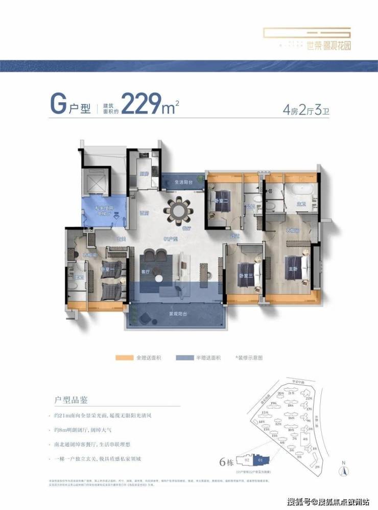 此次,世荣-暻观花园为我们带来了多个不同建面的户型,分别是从102㎡3房到229㎡房的平层户型。