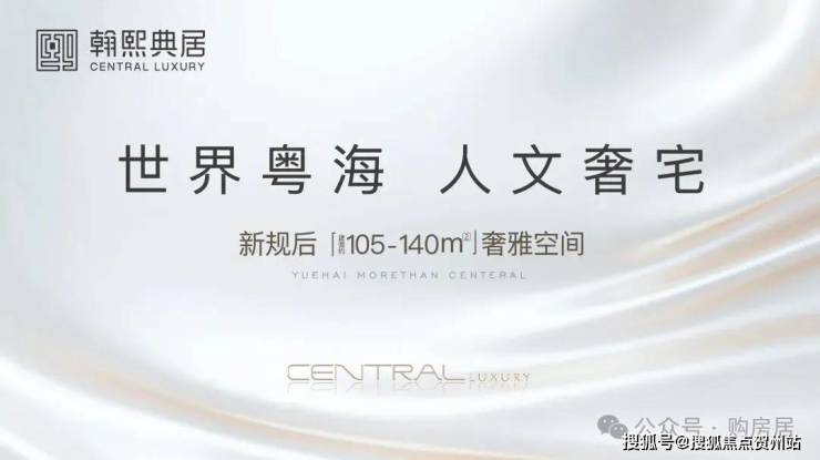 奢阔空间丨中心极境 礼献粤海 翰熙典居,粤海十年之后再上新,全新奢居综合体礼献峯层。可售主力户型新规后建面约105-140㎡奢雅空间,全明方正户型将空间奢阔感与生活舒适度完美契合。明星户型超6米阳台开间,全维度巨幕景观视野,尽揽湾心万千风景。