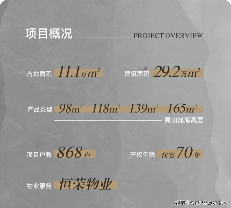 「产品类型」:建面约98㎡、约118㎡、约138㎡、约165㎡ 瞰山揽海高层