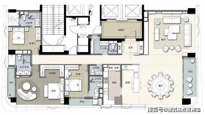:4+1房2厅3卫,2梯2户设计。客厅与餐厅相连,形成超13米的大面宽空间,奢享极致景观视野。招商太子湾·鲸域 售楼处电话:400 006 8087。设有三阳台,其中近9米的海景阳台面宽,让海景一览无余。层高达3.6米,高挑空间与绝佳景观完美契合。