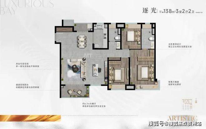 以7.6m大横厅,深U型厨房以及奢阔休闲阳台,彰显高阶气度与格局,独立入户的设计互不打扰,静享私密,南向大横厅,让阳光、风景与生活常伴。再次以奢阔美学艺术生活,敬献金山大人物。