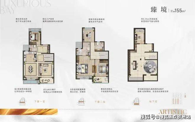 叠墅层高:叠墅1层层高约3.4米,2层层高约3.2米,地下室层高约5.35米