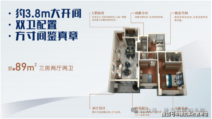 蝶形楼体,270°三面采光通风;全明通透户型,功能分区合理,品质生活从容有度