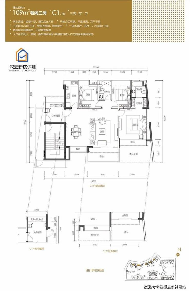 (2)约109㎡3+1房,折后总价约500-570万;