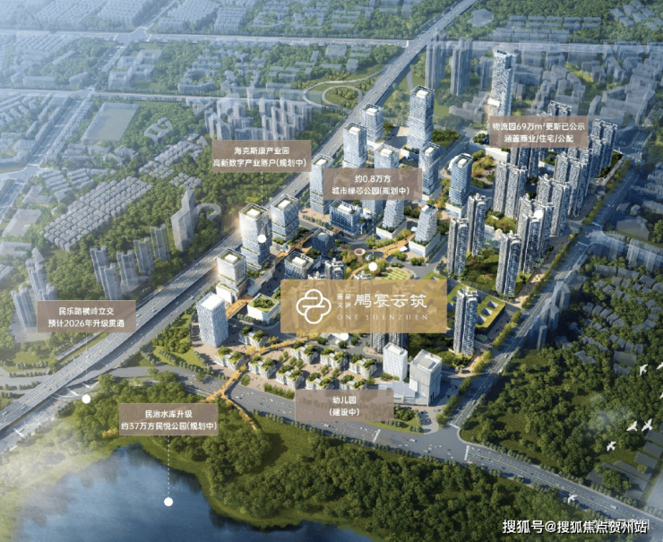 深圳城芯双中轴交汇处,南北为港深科创中轴(也被称为梅观科技走廊),由北至南依次串联着东莞松山湖、光明科学城、观澜高新园、华为、富士康、华南物流园、梅林关片区、香蜜湖新金融中心、福田中心CBD、河套深港合作区。