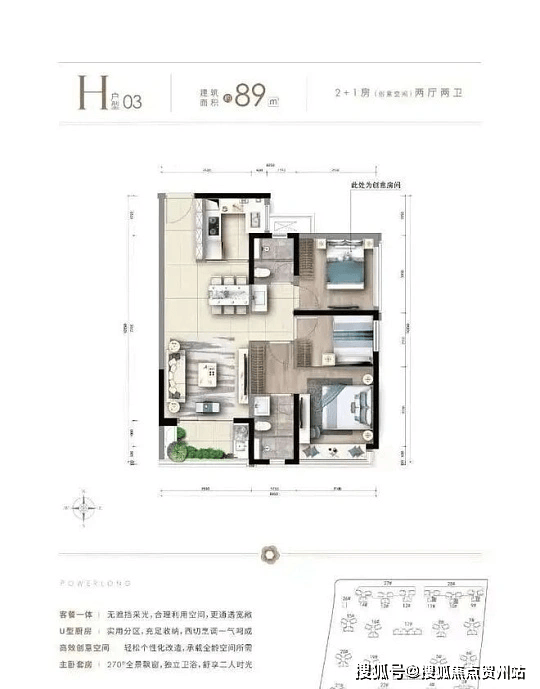 89㎡ 2+1 房两厅两卫(刚需入门,高拓展)