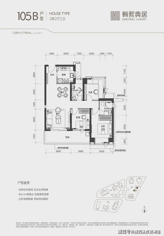 奢阔空间丨中心极境 礼献粤海翰熙典居,粤海十年之后再上新,全新奢居综合体礼献峯层。可售主力户型新规后建面约105-140㎡奢雅空间,全明方正户型将空间奢阔感与生活舒适度完美契合。明星户型超6米阳台开间,全维度巨幕景观视野,尽揽湾心万千风景。