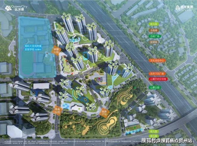 深圳远洋城,超百万方全配套综合大城,家门口南科大龙岗附属实验学校(在建中),家门口山厦公园,规划有3所幼儿园、约4万平米商业、文化活动中心、文化主题园林、四大主题泛会所架空层、写字楼等,以古树广场搭建人文住区的首开地块,为大城幸福生活赋能。