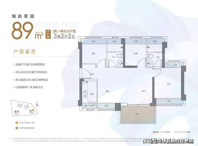总规划1485户,其中租赁型人才住房1020户,1栋1/2/5单元商品房是2梯5户设计,停车位1124个,车位比约1:0.76。