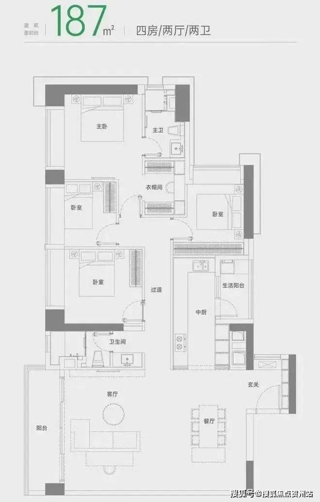建筑面积约187㎡户型