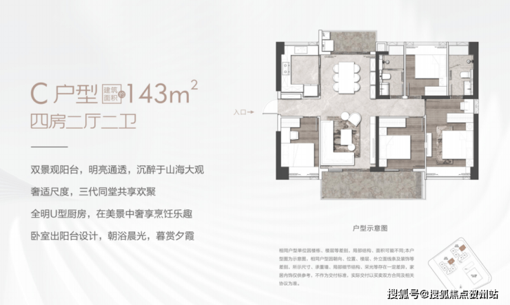 143㎡的奢阔户型,特别打造了双景观阳台,明亮通透,山海美景一览无余,每一个空间都是大尺度,能一步到位满足每个人生阶段的不同家庭格局需求,无论三代同堂还是多胎家庭,实现一步到位。