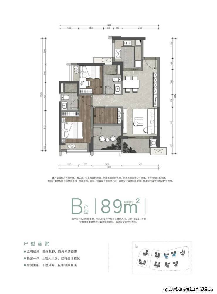 约89㎡三房两卫(3栋BC座01/02/03户型、E座02/03/04/05户型)