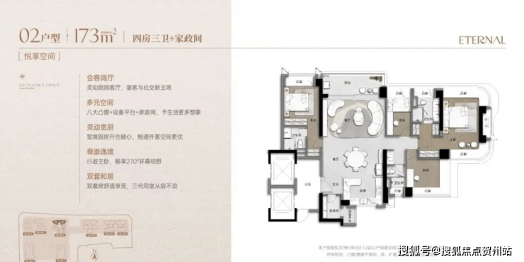 3.户型设计:主推91-173㎡新规户型,使用率超90%,配备“弹性方厅”“环幕主卧”“三面采光”等设计,空间利用率高,部分户型可改造为4房,满足改善需求。