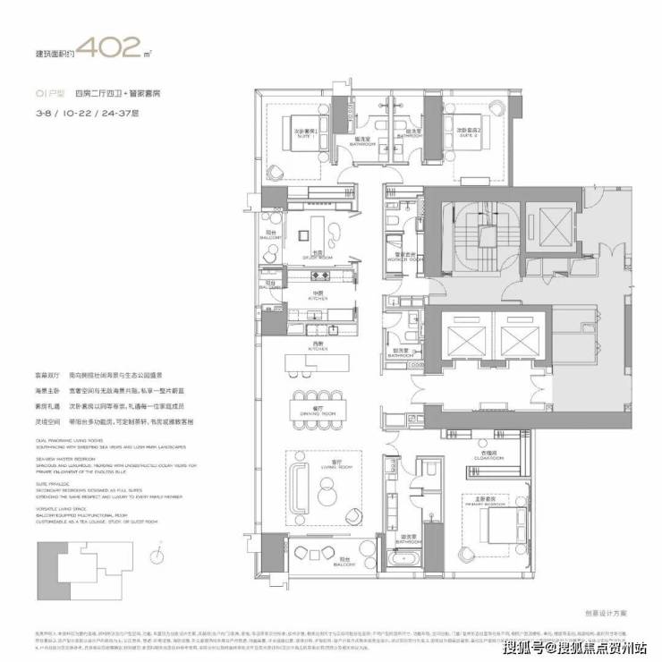 可定制茶轩、书房或雅致客居,主卧看海景带独立衣帽间。