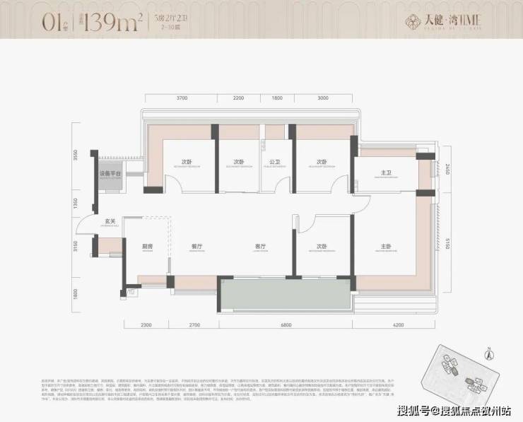 139㎡五房则面向高端改善家庭,采用横厅设计,6.8米开间阳台带来巨幕视野。主卧面积约22㎡,配备双台盆卫浴、浴缸和步入式衣帽间,尊享酒店式生活体验。