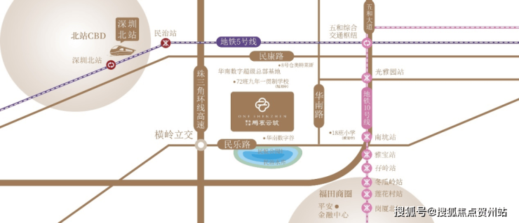 项目直线距离10号线南坑站约600米,周边还有10号线光雅园站、5号线民治站,6号线白石龙站,及规划中的22号线,地铁通勤便利。周边道路有珠三角环线高速、五和大道、民乐路等,可快速到达深圳福田等各核心区域。