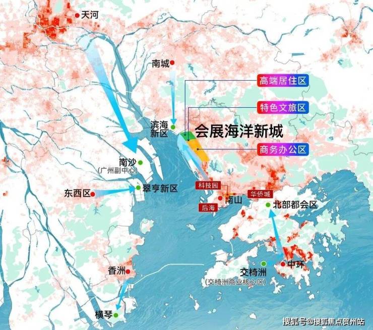 项目位于大前海扩容区,是深圳最后一块填海用地;周边还有国际会展中心(已开业,直接带动相关产业收入约1350亿元)+海洋新城(预计2035年建成,预计建成后产值规模达7000亿元)+文旅(华发冰雪世界+海上田园4A景区+金蚝小镇),发展预期较大。