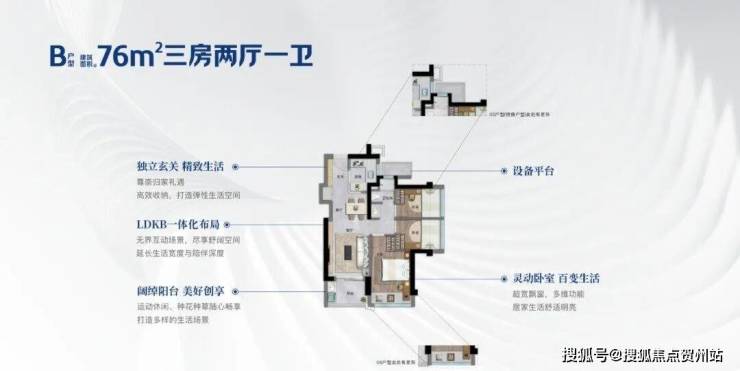 【约76㎡三房两厅一卫】