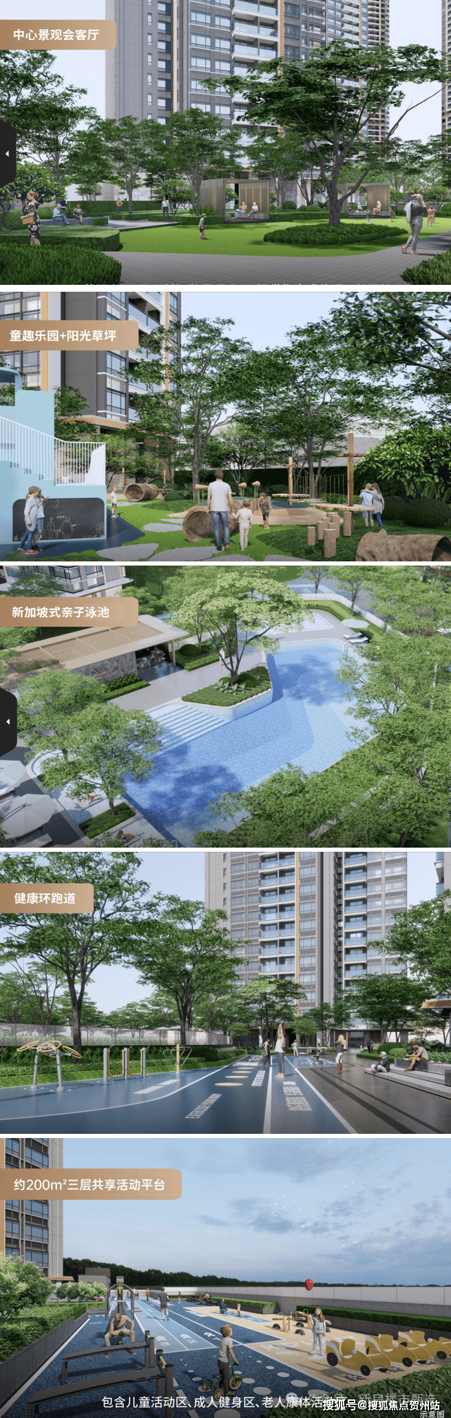 架空层泛会所:打造休闲会客、儿童活动、老人活动、成人健身等功能在内的全龄欢聚社区