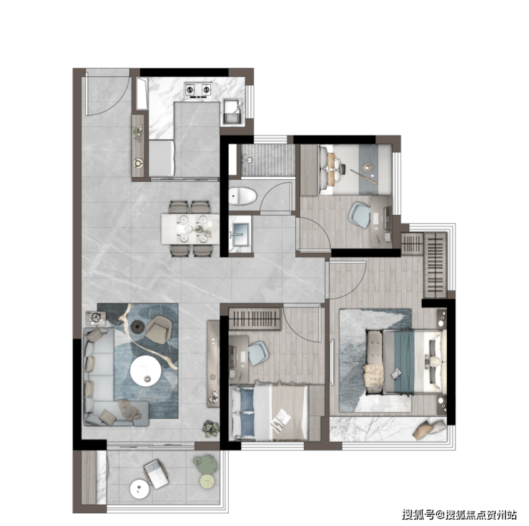 「建筑面积约89㎡丨三房两厅两卫」LDKG一体化设计U型厨房约6米双面宽超大景观阳台独立卧室带独立卫浴主题设计儿童房