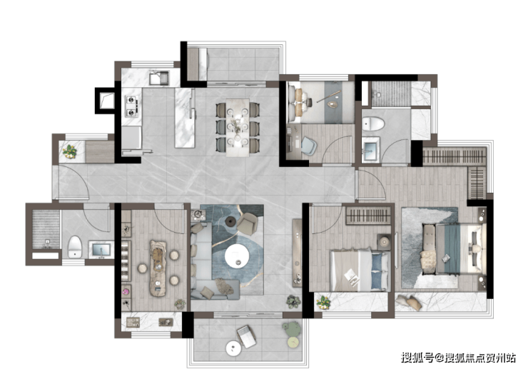 「建筑面积约98㎡丨四房两厅两卫」LDKG一体化阔绰设计南北通透全景双阳台创新可变空间星级主卧臻优套房联动式餐客厅U型大厨房