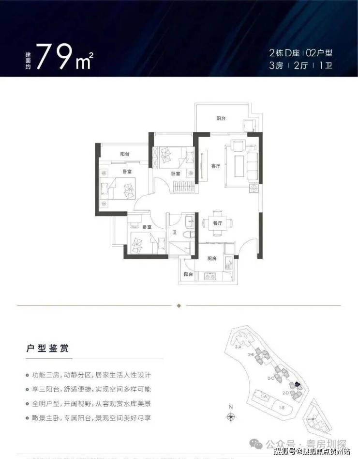 建面约79-129㎡3-4房户型,南北通透,3房3.5~3.7m,4房3.8~4.2m,罕见阔绰开间,客厅、厨房、卧室三阳台多飘窗,超高使用率。