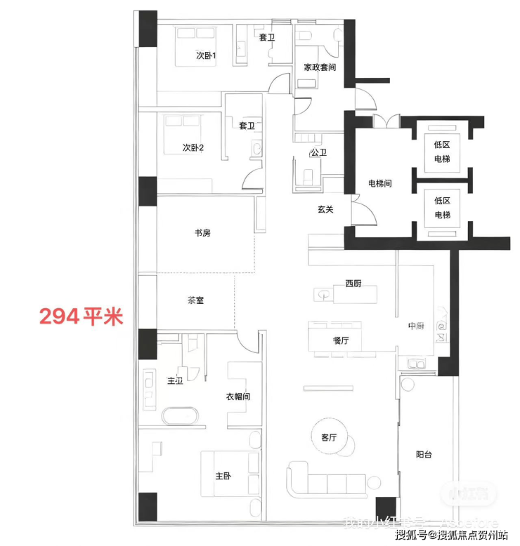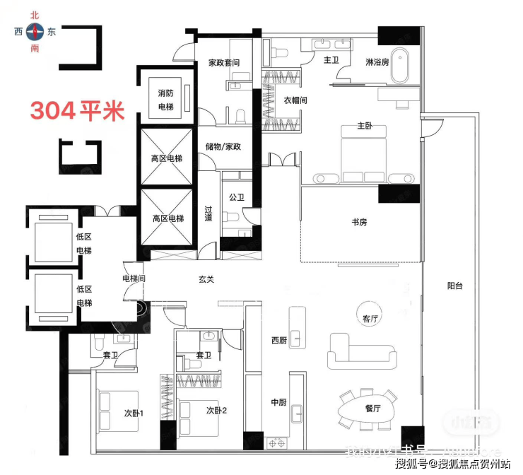 低区5F起(150米以内)是约209-304㎡四房以上大户型;