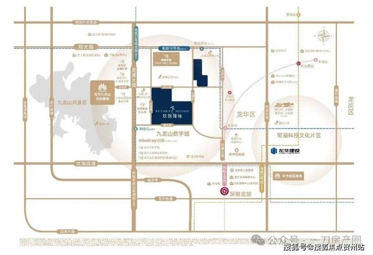 核心优势:项目直线距离华为九龙山基地约600米,同时片区聚集了迈瑞医疗、富士康等超10家世界500强企业,属于深圳市级重点规划片区(九龙山数字城),规划产值超3500亿元,潜在的高素质接盘人群稳定,发展潜力巨大。