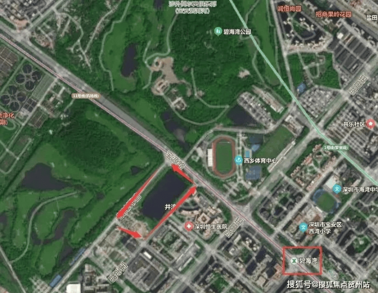 交通方面:距离11号线碧海湾站直线距离约500米,步行10分钟可达,30分钟就能直达福田CBD。而且距地铁1号线西乡站直线距离约1000米。