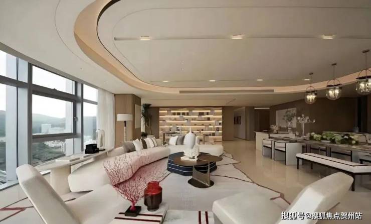 舒适:3.9米层高,10米客厅开间全落地玻璃设计。