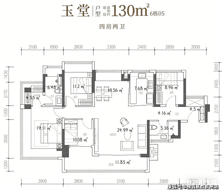 :四开间朝南,采光通透,主卧配备转角飘窗与设备平台,空间开阔,折后总价 462 万起,刚改家庭首选。