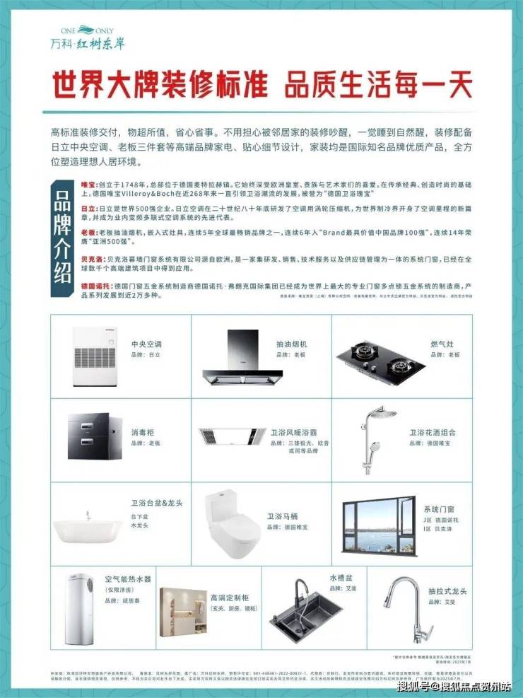 在高达96%实用率的产品力之下,更难能可贵的是,万科红树东岸洋房产品也是带精装交付,所使用的品牌皆为国际一线优质品牌的高端产品线,价格超市面上开发商常用品牌的2000+元/㎡,为您的新家省下不小的装修成本,同时优质品牌也能让您省心又安心!