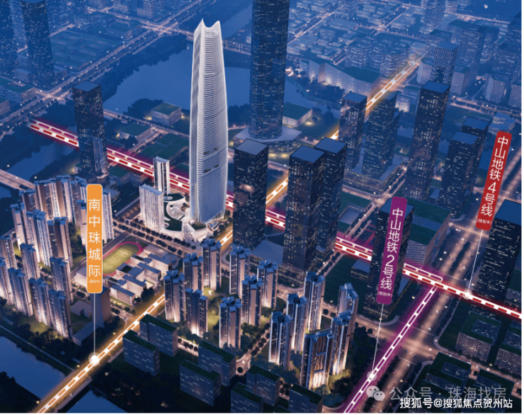 三线(南中珠城际、中山轨道2号线和4号线)均在本案设置站点,地铁出入口距离本案所有地块最远仅为400米,距离北塔公交枢纽站,最远仅660米,30条公交路线任选。最大程度虹吸资金流,人才流和产业流。
