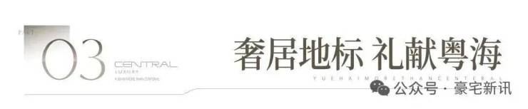 奢阔空间丨中心极境 礼献粤海 翰熙典居,粤海十年之后再上新,全新奢居综合体礼献峯层。可售主力户型新规后建面约105-140㎡奢雅空间,全明方正户型将空间奢阔感与生活舒适度完美契合。明星户型超6米阳台开间,全维度巨幕景观视野,尽揽湾心万千风景。
