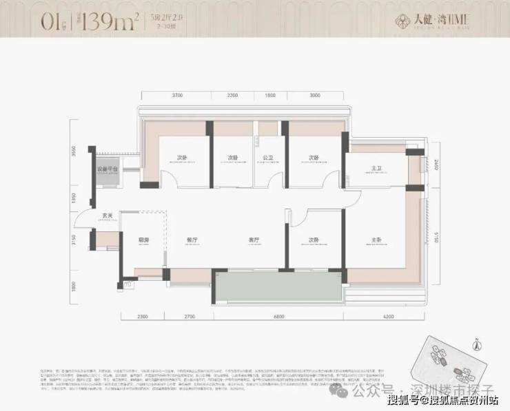 建面约139㎡五房两厅两卫,超大横厅+约6.8米景观大阳台,都是南向采光。景观面很震撼,北向山景,南向海景尽收眼底。一个次卧直通阳台,景观面不输主卧,蔚蓝海面可以躺着看。主卧套房三面采光,市面上是很少见的,开间约4.2米,空间很大,主卫尺度足以放下浴缸。