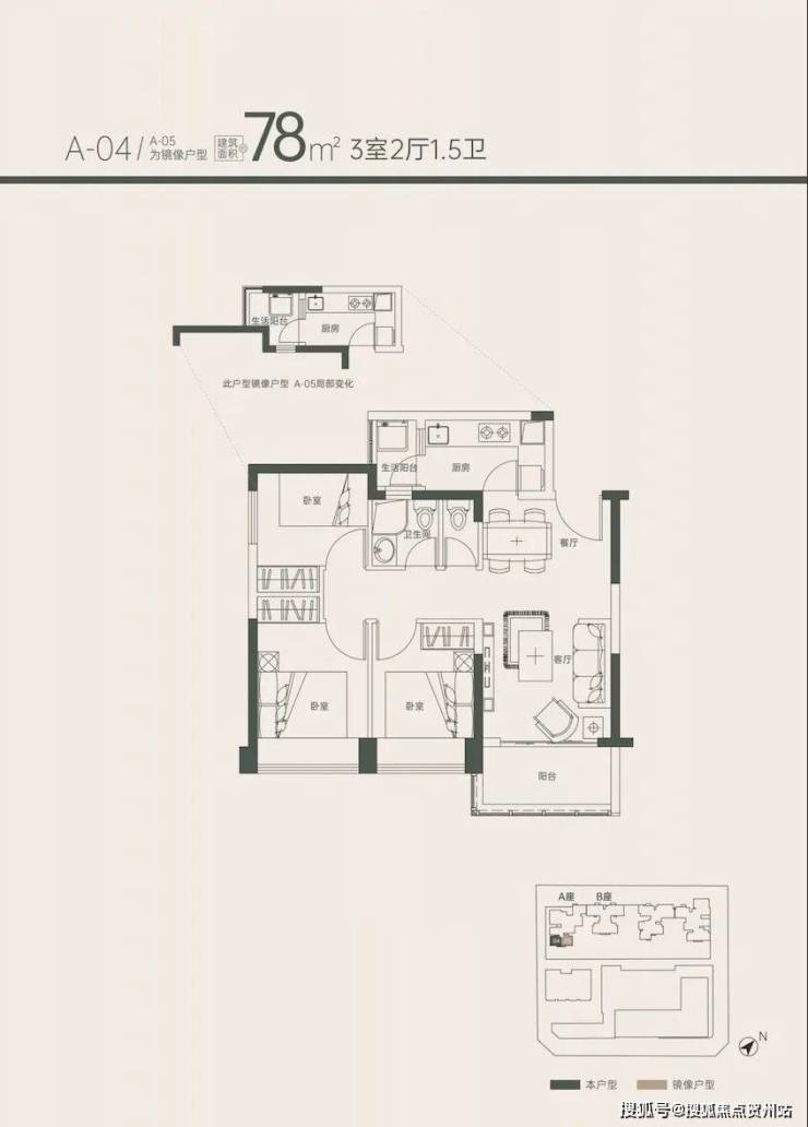 78㎡能做到三房+1.5卫+双阳台,功能性已经可以吊打科技园100㎡的新房。户型设计比较方正,1.5设计比较人性化,毕竟若三四口之家居住,多个马桶生活质素会提高很多。