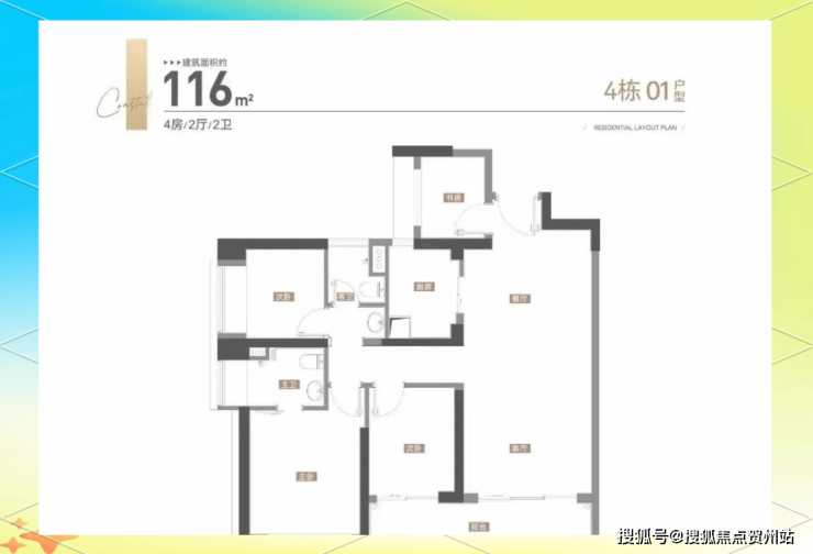 4栋、5栋:4梯5户,层高3.1米,01-02户型116平3房2卫,03、05户型142平4房2卫,04户型120平3房2卫