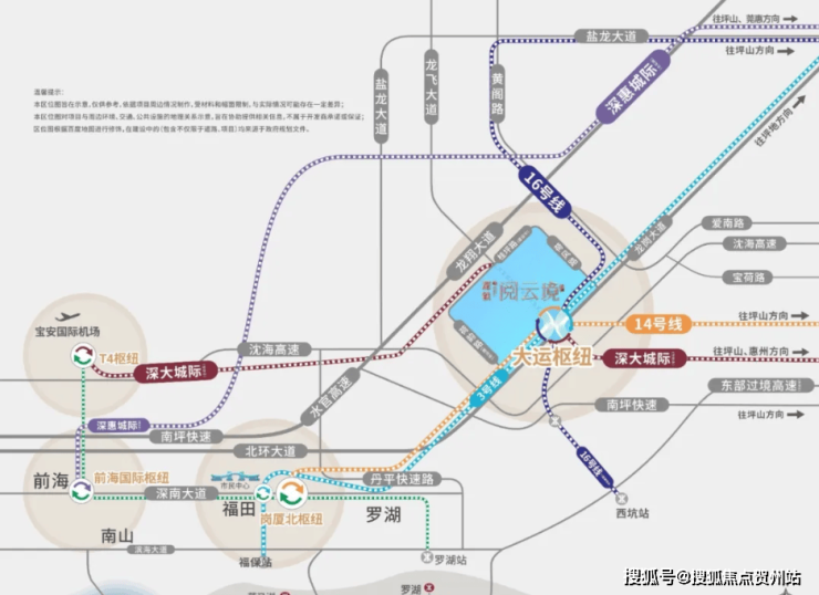 交通配套:深铁阅云境是东部最大的大运交通枢纽站上盖物业,所在的“大运枢纽站”汇聚了3/14/16号线,以及33号线(深大城际)。地下室可直达乘坐地铁站,交通十分便利。
