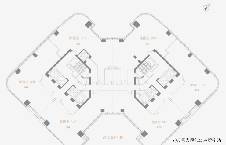 方胜纹双核心筒的设计使得整栋建筑更加高效和私密,并实现了双专梯电梯入户,为塔尖人群高效的工作和私密的生活而服务。转角处曲线设计,拓宽了整个建筑界面,使得建筑拥有270°转角无柱开放式观景视野。是塔尖人群拥揽深港的极佳观景台,足以盛放您帷幄城市的雄心。