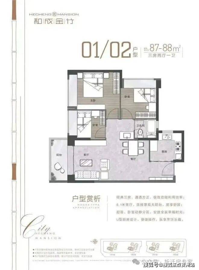 3房2厅1卫87-88㎡