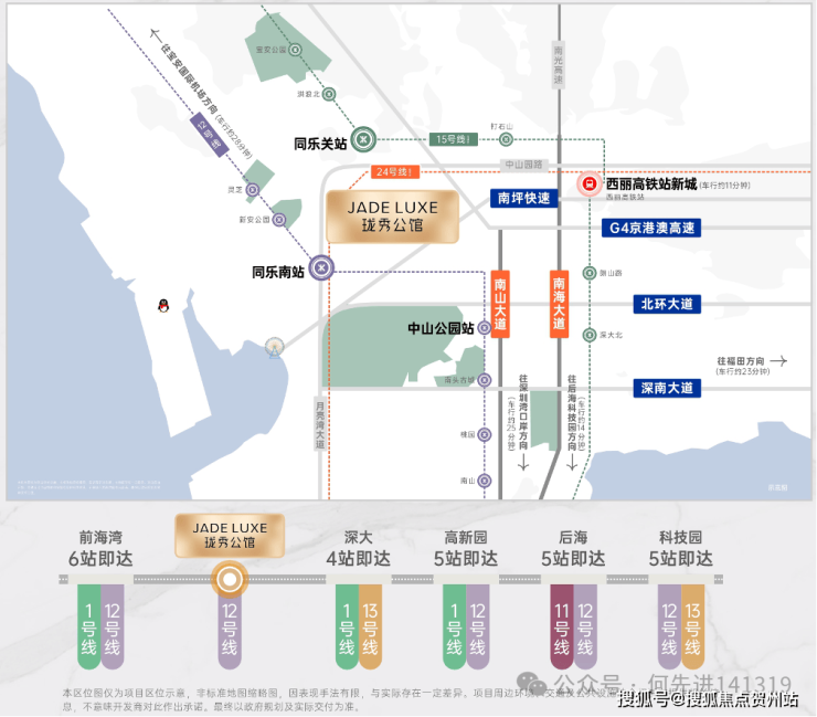 •15号线同乐关站(在建中,预计2028年12月开通),串联宝中/前海/深圳湾/西丽,也被称为深圳“一环线”,本项目为环线上的重要一环;