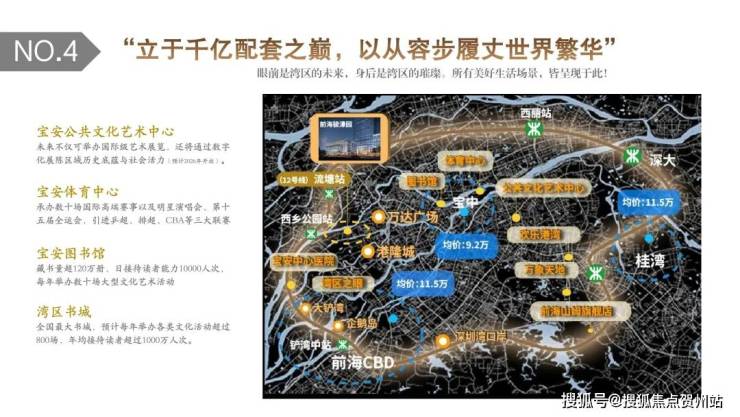 🎡 近距西乡会堂,紧邻宝安体育中心、毗邻欢乐港湾、宝安区公共艺术中心(在建中,含博物馆、美术馆、艺术馆)、湾区书城、宝安区图书馆等。
