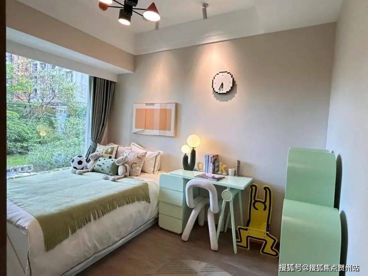 另一个房间,样板间则作为创意书房,利用坐垫和靠枕等软装将飘窗打造为阅读区。