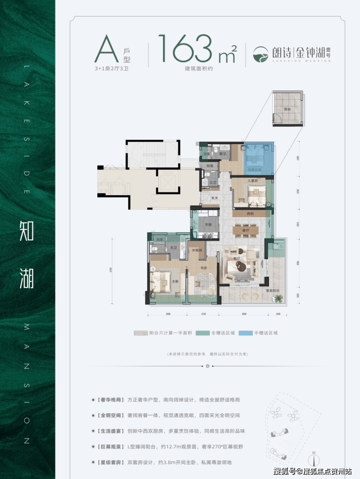 94-163㎡精装神户型:94㎡三房方正通透,163㎡南北双套房设计,7.4米景观阳台揽湖入怀