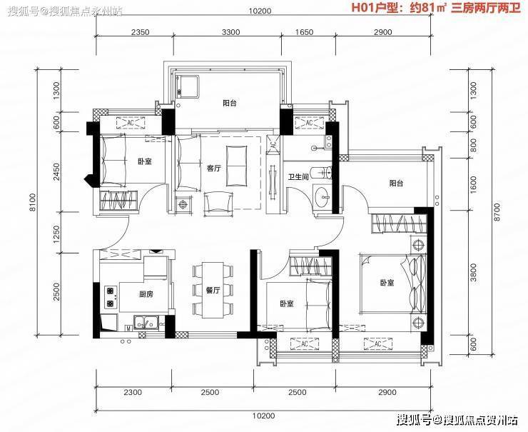 约81㎡三房两厅两卫:堪称“空间魔术师”,实现了功能与舒适度的完美平衡,无论是三代共居还是二孩家庭,都能从容舒享。双卫生间设计,空间功能更优越,早晚高峰期不再拥挤,居家生活更高效。主卧独立套房,精巧三房也能私享私密与尊崇,满足年轻家庭对品质生活的追求。