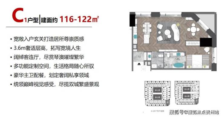户型面积:低区及中区(8-35F)户型建面约54-150㎡;高区(37-44F)户型建面约273-833㎡;