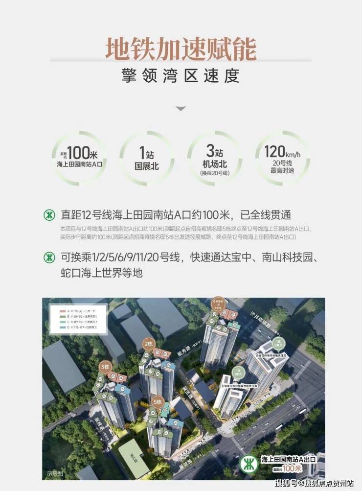 靠近地铁12号线海上田园南站,地铁20号线3站直达宝安国际机场,远期规划延伸至东莞。以及规划中的地铁18/30号线:串联光明、龙华,强化东西向交通联系。位于沙井南环路与展城路交汇处,自驾方便。