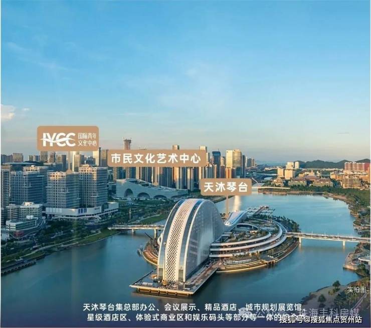 •天沐琴台位于天沐河东段核心区人工岛,位于项目正对面,被誉为“横琴之心”