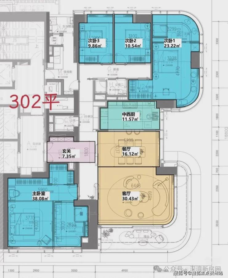 302平户型实用面积汇总